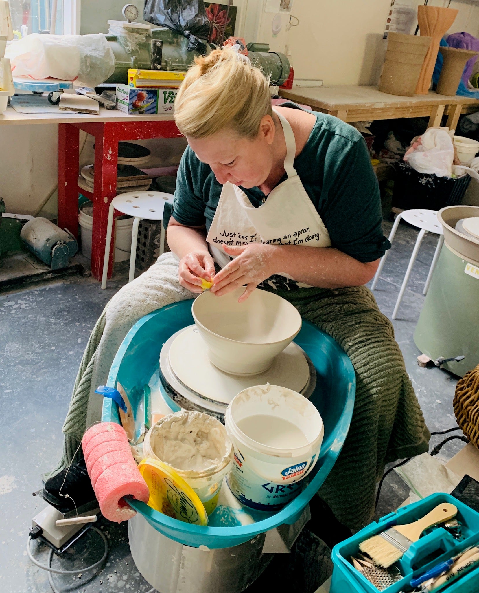 Born in Africa, Linda spent her childhood drawing and painting alongside her father, an architect. In her teenage years she began exploring the fundamental skills of pottery. Immigrating to Perth, Australia in 1995 resulted in a lengthy hiatus from creative work. She joined the Yokine Pottery Club in 2013, mastering stoneware, porcelain and raku. The start of 2018 opened a new chapter with a relocation to Melbourne and the beginning of new pottery experiences. Linda explores the interactions between glazes, enjoying the surprises that occur, thus creating a melding of colours and textures. She is driven to create artwork that is functional yet beautiful and unique. Her desire is to produce vessels that are admired and used frequently. Linda believes that one feasts with their eyes resulting in the food presented in her bowls tasting even better.